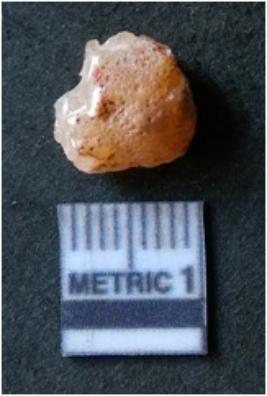 | Description / विवरण | The flake has irregular fracture pattern and sharp flaked edges as a result of lithic knapping activity. The piece is pale, with surfacial flake scars and a bulbous end. The quartz flake is rosy white in colour. |