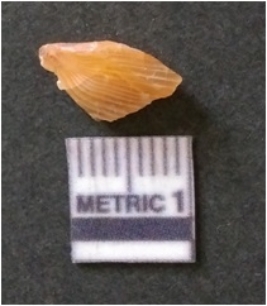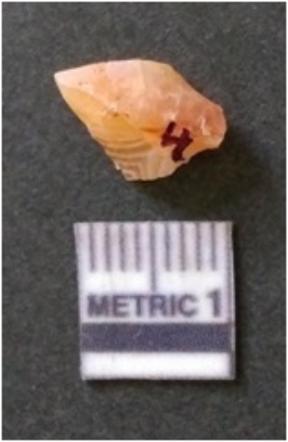| Description / विवरण | It is an agate flake with bulb of percussion on ventral side of the fragment. Flake ridges on the surface. |