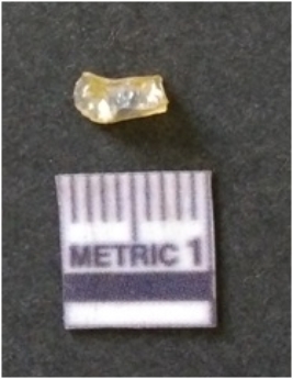 | Description / विवरण | The chalcedony flake is pale in color and translucent in appearance. The piece has s harp flaked ends and a bulbous end due to flaking. The flake has a crypto-crystalline silica matrix. |
