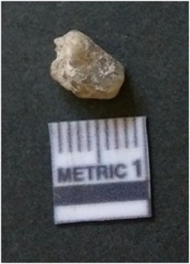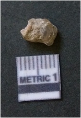 | Description / विवरण | It is chalcedony flake, translucent in appearance. The piece shows sharp pointed ends and flake scars on the surface as a result of flaking. The piece shows a bulb of percussion. |
