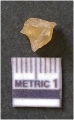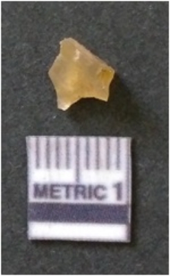 | Description / विवरण | The chalcedony flake is pale in color and translucent in appearance. The piece has s harp flaked ends and a bulbous end due to flaking. The flake has a crypto-crystalline silica matrix. |