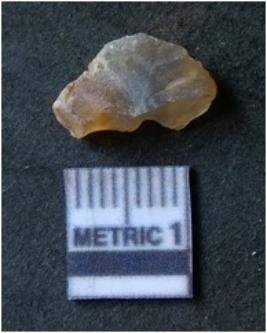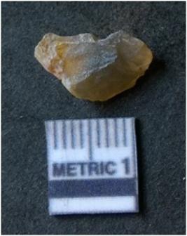 | Description / विवरण | It is chalcedony flake, translucent in appearance. The piece shows sharp pointed ends and flake scars on the surface as a result of flaking. The piece shows a bulb of percussion. |