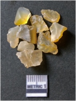 | Description / विवरण | It is chalcedony flake, translucent in appearance. The piece shows sharp pointed ends and flake scars on the surface as a result of flaking. The piece shows a bulb of percussion. |