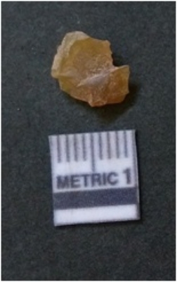 | Description / विवरण | It is chalcedony flake, translucent in appearance. The piece shows sharp pointed ends and flake scars on the surface as a result of flaking. The piece shows a bulb of percussion. |
