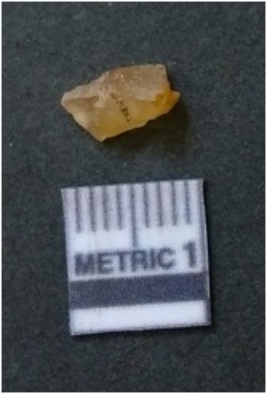 | Description / विवरण | It is chalcedony flake, translucent in appearance. The piece shows sharp pointed ends and flake scars on the surface as a result of flaking. The piece shows a bulb of percussion. |