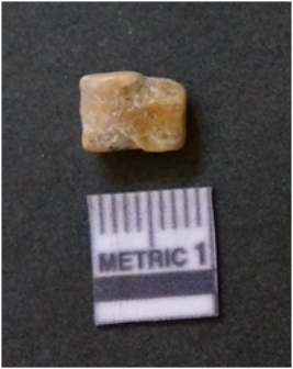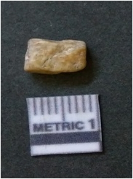 | Description / विवरण | It is chalcedony flake, translucent in appearance. The piece shows sharp pointed ends and flake scars on the surface as a result of flaking. The piece shows a bulb of percussion. |