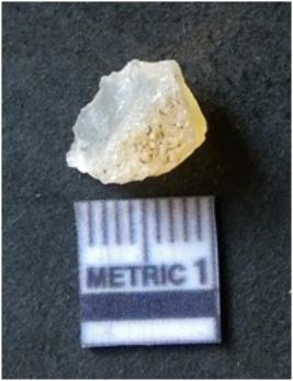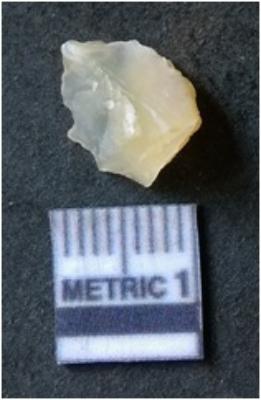 | Description / विवरण | It is chalcedony flake, translucent in appearance. The piece shows sharp pointed ends and flake scars on the surface as a result of flaking. The piece shows a bulb of percussion. |