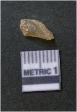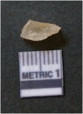 | Description / विवरण | It is chalcedony flake, translucent in appearance. The piece shows sharp pointed ends and flake scars on the surface as a result of flaking. The piece shows a bulb of percussion. |