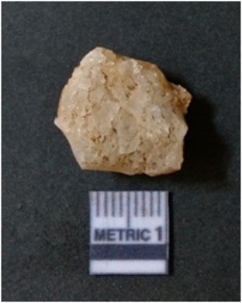 | Description / विवरण | It is chalcedony flake, translucent in appearance. The piece shows sharp pointed ends and flake scars on the surface as a result of flaking. The piece shows a bulb of percussion. |