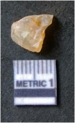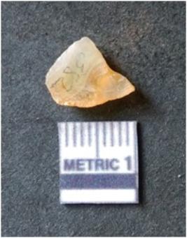 | Description / विवरण | It is chalcedony flake, translucent in appearance. The piece shows sharp pointed ends and flake scars on the surface as a result of flaking. The piece shows a bulb of percussion. |