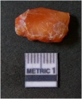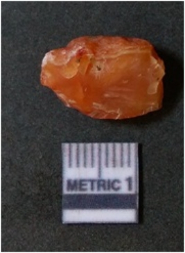 | Description / विवरण | It is chalcedony flake, translucent in appearance. The piece shows sharp pointed ends and flake scars on the surface as a result of flaking. The piece shows a bulb of percussion. |