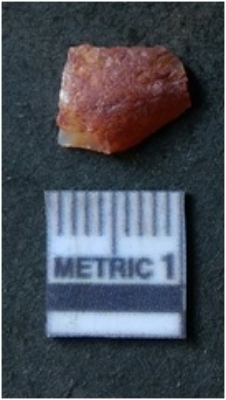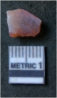 | Description / विवरण | It is chalcedony flake, translucent in appearance. The piece shows sharp pointed ends and flake scars on the surface as a result of flaking. The piece shows a bulb of percussion. |