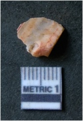 | Description / विवरण | The quartz flake has sharp flaked edges and pointed ends as a result of flaking. The piece is semi-transparent in nature with irregular fracture pattern. The piece is roughly triangular in shape and has a prominent bulb of percussion. |