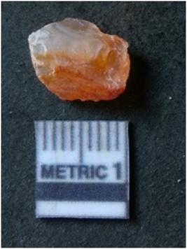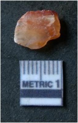 | Description / विवरण | It is chalcedony flake, translucent in appearance. The piece shows sharp pointed ends and flake scars on the surface as a result of flaking. The piece shows a bulb of percussion. |
