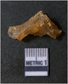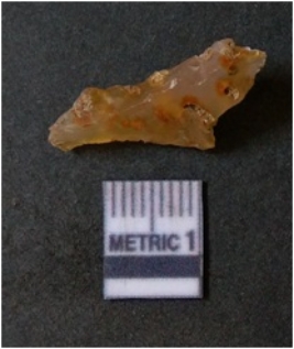 | Description / विवरण | It is chalcedony flake, translucent in appearance. The piece shows sharp pointed ends and flake scars on the surface as a result of flaking. The piece shows a bulb of percussion. |
