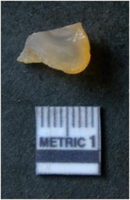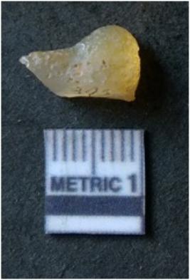 | Description / विवरण | It is chalcedony flake, translucent in appearance. The piece shows sharp pointed ends and flake scars on the surface as a result of flaking. The piece shows a bulb of percussion. |