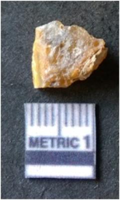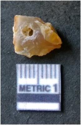 | Description / विवरण | It is chalcedony flake, translucent in appearance. The piece shows sharp pointed ends and flake scars on the surface as a result of flaking. The piece shows a bulb of percussion. |