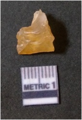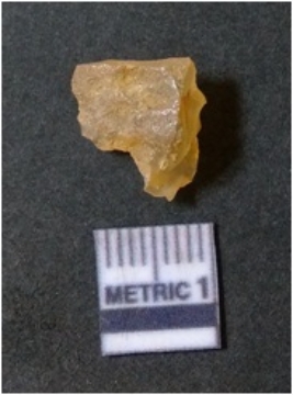 | Description / विवरण | It is chalcedony flake, translucent in appearance. The piece shows sharp pointed ends and flake scars on the surface as a result of flaking. The piece shows a bulb of percussion. |