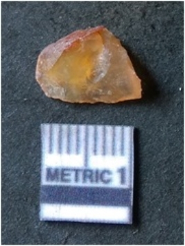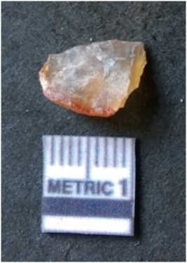 | Description / विवरण | It is chalcedony flake, translucent in appearance. The piece shows sharp pointed ends and flake scars on the surface as a result of flaking. The piece shows a bulb of percussion. |