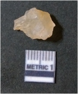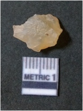 | Description / विवरण | It is chalcedony flake, translucent in appearance. The piece shows sharp pointed ends and flake scars on the surface as a result of flaking. The piece shows a bulb of percussion. |
