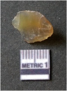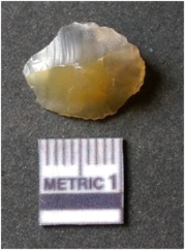 | Description / विवरण | It is chalcedony flake, translucent in appearance. The piece shows sharp pointed ends and flake scars on the surface as a result of flaking. The piece shows a bulb of percussion. |