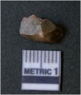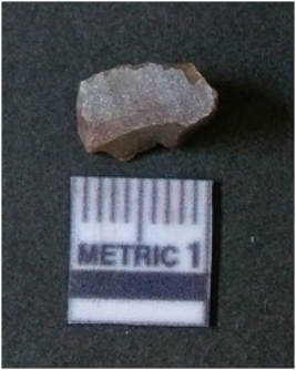 | Description / विवरण | The jasper fragment has sharp flaked edges and a bulb of percussion. The piece is dark in color and has crypto crystalline matrix. Flake scars are visible on the surface and bulb of percussion is present as a result of lithic knapping activity. |