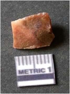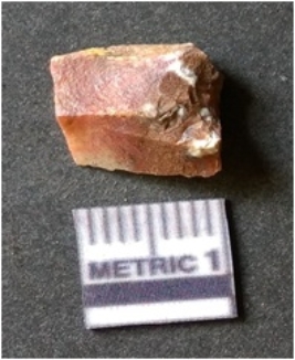 | Description / विवरण | The chert piece is dark in color, with a prominent bulb of percussion and sharp flaked edges. The piece is a part of lithic debitage or raw material for lithic knapping. The piece shows clear ripple marks and bulb of percussion. |