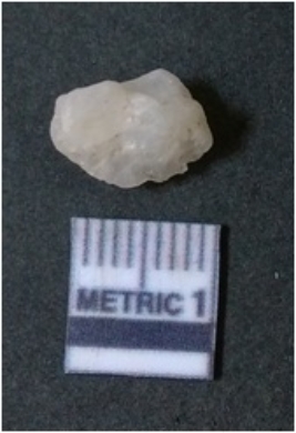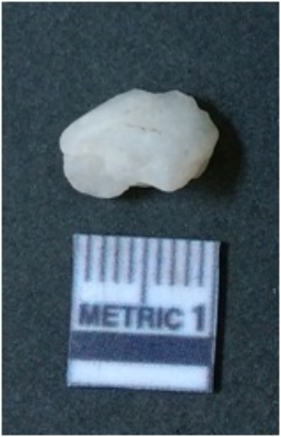| Description / विवरण | The quartz flake has sharp flaked edges and pointed ends as a result of flaking. The piece is semi-transparent in nature with irregular fracture pattern. The piece is roughly triangular in shape and has a prominent bulb of percussion. |