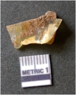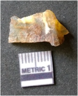 | Description / विवरण | It is chalcedony flake, translucent in appearance. The piece shows sharp pointed ends and flake scars on the surface as a result of flaking. The piece shows a bulb of percussion. |