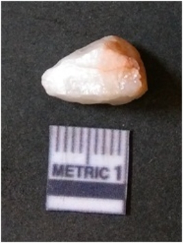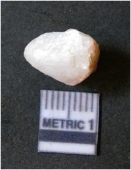 | Description / विवरण | The milky quartz flake has irregular fracture pattern and sharp flaked edges as a result of lithic knapping activity. The piece is pale, with surfacial flake scars and a bulbous end. The flake is white in color. |
