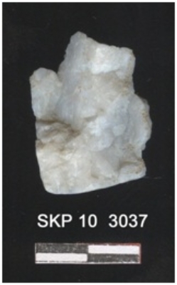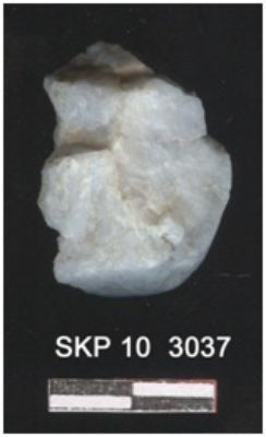| Description / विवरण | Lithic debitage on quartzite. It is white in color and the ridges can be seen. |