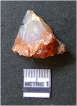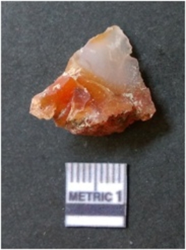 | Description / विवरण | It is carnelian flake red in color, with sharp flakes edges and a small bulb of percussion owing to knapping activity. The piece has sharp flaked edges and a crypto-crystalline matrix. |