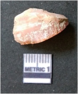 | Description / विवरण | It is chalcedony flake, translucent in appearance. The piece shows sharp pointed ends and flake scars on the surface as a result of flaking. The piece shows a bulb of percussion. |