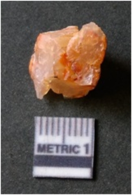 | Description / विवरण | The flake has irregular fracture pattern and sharp flaked edges as a result of lithic knapping activity. The piece is pale, with surfacial flake scars and a bulbous end. The quartz flake is rosy white in colour. |