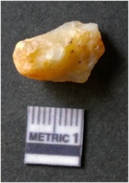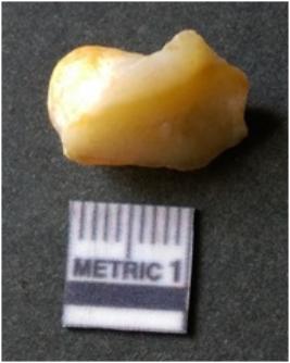 | Description / विवरण | It is chalcedony flake, translucent in appearance. The piece shows sharp pointed ends and flake scars on the surface as a result of flaking. The piece shows a bulb of percussion. |