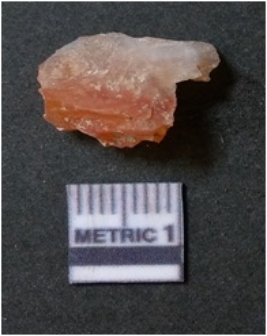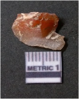 | Description / विवरण | It is chalcedony flake, translucent in appearance. The piece shows sharp pointed ends and flake scars on the surface as a result of flaking. The piece shows a bulb of percussion. |