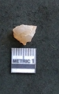 | Description / विवरण | It is a chalcedony flake, with a bulb of percussion on the ventral side. Cortex on one end. |