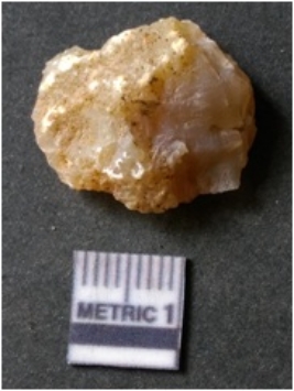 | Description / विवरण | The quartz flake has sharp flaked edges and pointed ends as a result of flaking. The piece is semi-transparent in nature with irregular fracture pattern. The piece is roughly triangular in shape and has a prominent bulb of percussion. |