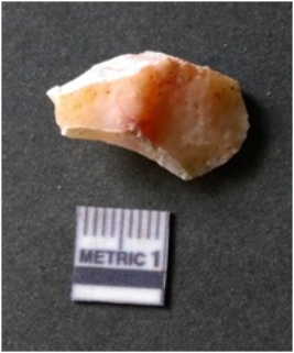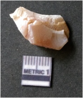 | Description / विवरण | The milky quartz flake has irregular fracture pattern and sharp flaked edges as a result of lithic knapping activity. The piece is pale, with surfacial flake scars and a bulbous end. The flake is white in color. |