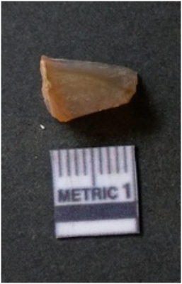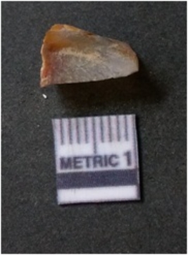 | Description / विवरण | The chert piece is dark in color, with a prominent bulb of percussion and sharp flaked edges. The piece is a part of lithic debitage or raw material for lithic knapping. The piece shows clear ripple marks and bulb of percussion. |