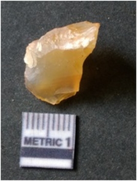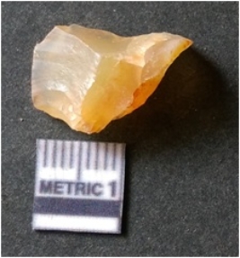 | Description / विवरण | It is chalcedony flake, translucent in appearance. The piece shows sharp pointed ends and flake scars on the surface as a result of flaking. The piece shows a bulb of percussion. |