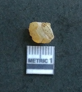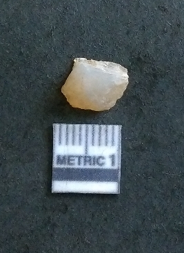 | Description / विवरण | It is a chalcedony flake, with a bulb of percussion on the ventral side. Cortex on one end. |
