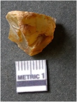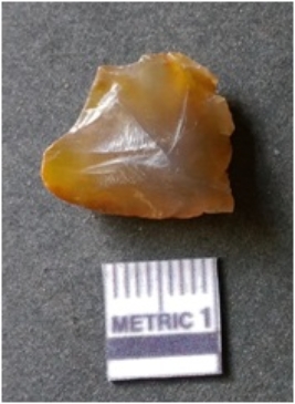 | Description / विवरण | It is chalcedony flake, translucent in appearance. The piece shows sharp pointed ends and flake scars on the surface as a result of flaking. The piece shows a bulb of percussion. |