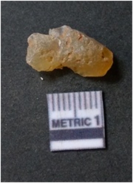 | Description / विवरण | It is chalcedony flake, translucent in appearance. The piece shows sharp pointed ends and flake scars on the surface as a result of flaking. The piece shows a bulb of percussion. |