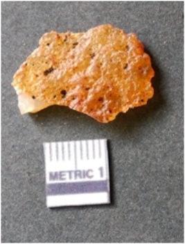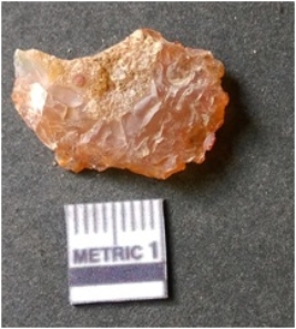 | Description / विवरण | It is chalcedony flake, translucent in appearance. The piece shows sharp pointed ends and flake scars on the surface as a result of flaking. The piece shows a bulb of percussion. |