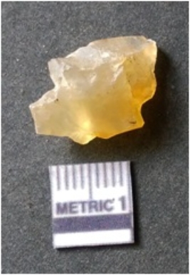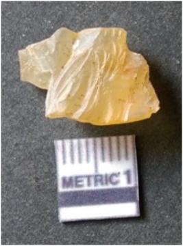 | Description / विवरण | It is chalcedony flake, translucent in appearance. The piece shows sharp pointed ends and flake scars on the surface as a result of flaking. The piece shows a bulb of percussion. |