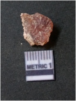 | Description / विवरण | The chert piece is dark in color, with a prominent bulb of percussion and sharp flaked edges. The piece is a part of lithic debitage or raw material for lithic knapping. The piece shows clear ripple marks and bulb of percussion. |
