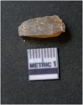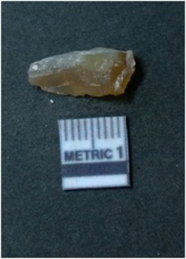 | Description / विवरण | It is chalcedony flake, translucent in appearance. The piece shows sharp pointed ends and flake scars on the surface as a result of flaking. The piece shows a bulb of percussion. |