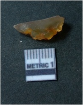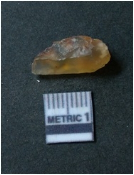 | Description / विवरण | It is chalcedony flake, translucent in appearance. The piece shows sharp pointed ends and flake scars on the surface as a result of flaking. The piece shows a bulb of percussion. |