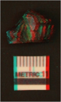| Description / विवरण | It is a broken glass piece, black in color, opaque in appearance, smooth and flat on one side, where as flake scars on the other side. |